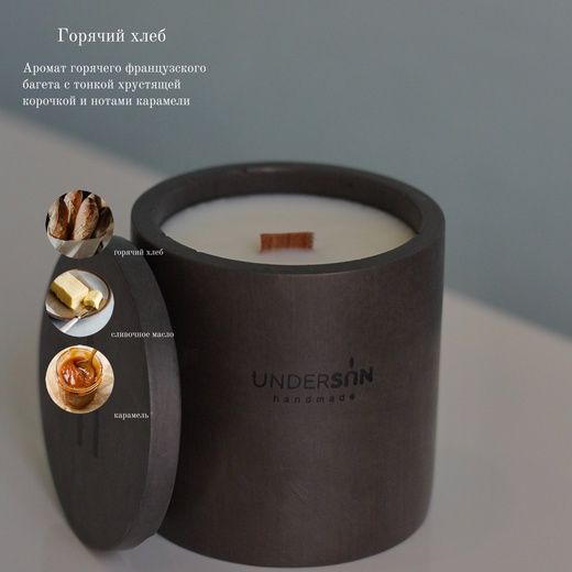 Ароматическая свеча выполненная из 100% органического кокосового воска в подсвечнике из архитектурного гипса с ароматом « Горячий хлеб»
